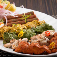 4 PCS CHICKEN TIKKA , 4 PCS CHICKEN PAHADI TIKKA, 4 PCS MUTTON SEEKH KEBAB, 4 PCS CHICKEN LEHSOON TIKKA